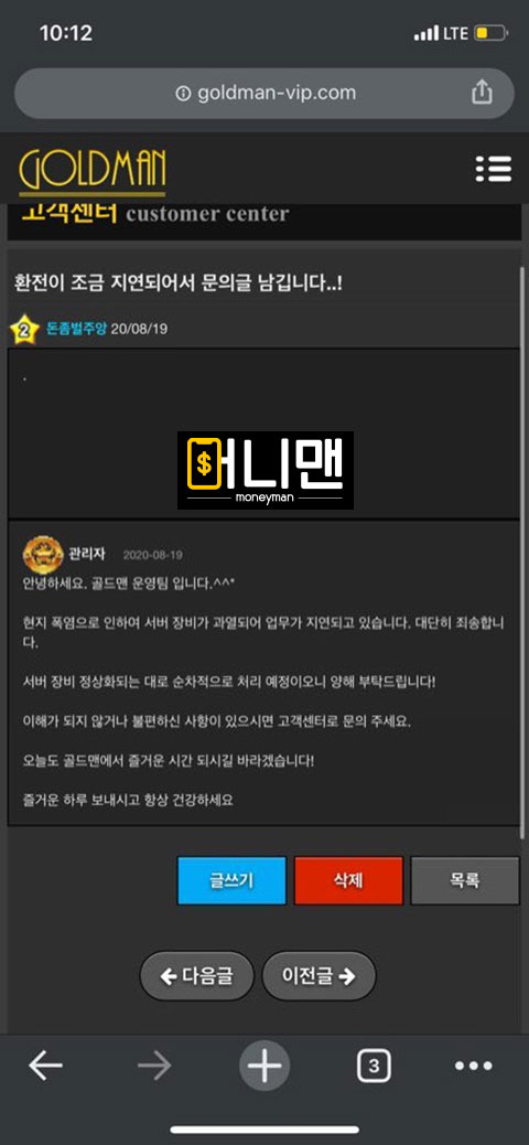 먹튀글 올린다고하니까 폭염어쩌고 하면서 서버 핑계대고 말도안되는 개소리하네요