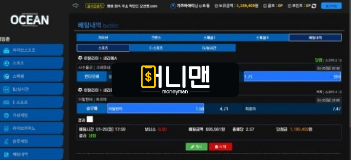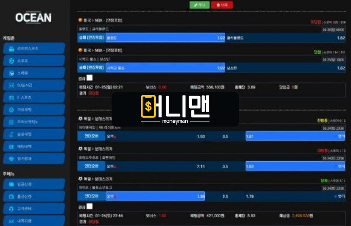 오션 먹튀 관련해서 제보 좀 하려고 합니다. 여러분이 무엇을 상상하시든 그 이상으로 악질인 곳이라고 보시면 될 겁니다. 입플 잘 나온다는 홍보 글 보고 가입해서 30만원을 충전 후 신규 입플까지 챙겨 받은 뒤 분데스리가 3폴더 걸어 봤는데 아쉽게도 낙첨이었습니다. 오랜만에 배팅하는 거라 그런지 낙첨되는 걸 보니까 화가 나더라고요. 바로 50만원을 추가 입금해서 NBA 2폴더를 묶어 봤지만 이것마저도 또 낙첨이었습니다. 이미 그때의 저는 멈출 수 없는 폭주하는 기관차와 같았고 잠까지 설쳐서 그런지 눈에 뵈는 게 없었는데요. 이번에는 60만원을 충전한 뒤 남아있던 포인트까지 섞어서 세리에 A 2폴더를 조합했는데 다행히 이번 배팅은 적중이었습니다. 하지만 바로 환전 버튼을 누르려고 사이트에 들어갔는데 보유 금액에는 예상 당첨금이었던 180만원이 아닌 118만원만 찍혀 있었습니다. 이게 무슨 일인가 싶어서 배팅 내역을 확인해 보니 경기 결과 처리가 잘못되어 있더군요. 심각한 문제도 아니고 흔했던 오류라서 대수롭지 않게 고객센터에 문의했는데 갑자기 양방이 확인되었다면서 추가 롤링을 돌려 오라고 합니다. 2폴더도 겨우 맞춰서 환전하는 사람에게 1.51배당 이상 경기를 4폴더 이상 맞춰 오라는 건 그냥 먹튀 하겠다는 말이나 다름없지 않겠습니까? 118만원이라도 달라고 해봤지만 롤링 후 환전하라는 말만 앵무새처럼 반복합니다. 밤새가며 잃기만 하다가 겨우 2폴더 맞춰서 환전하려는 사람에게 추가 롤링을 시키는 악질 사이트 오션 이놈들이 정말 사람 새끼가 맞긴 한 건지 묻고 싶네요.
