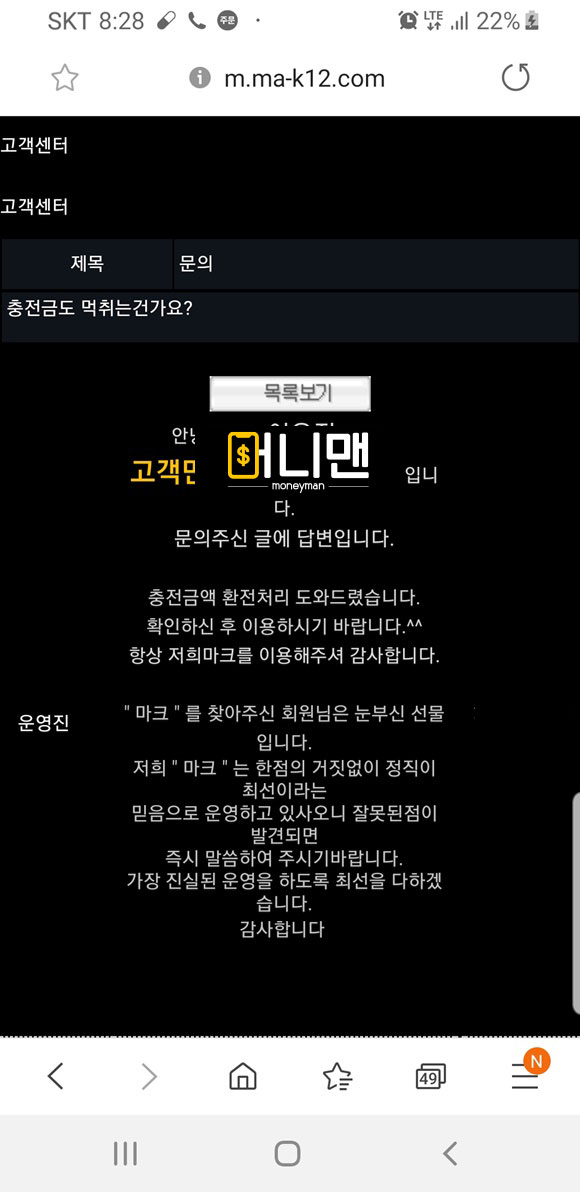 마크라는 사이트에 가입해서 첫 충전으로 80만원을 입금했었습니다.