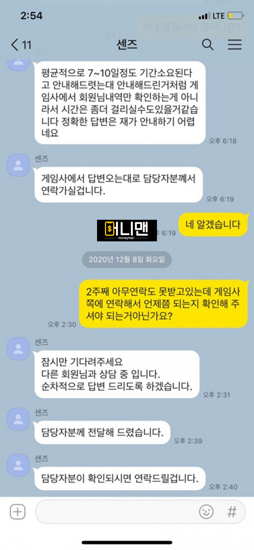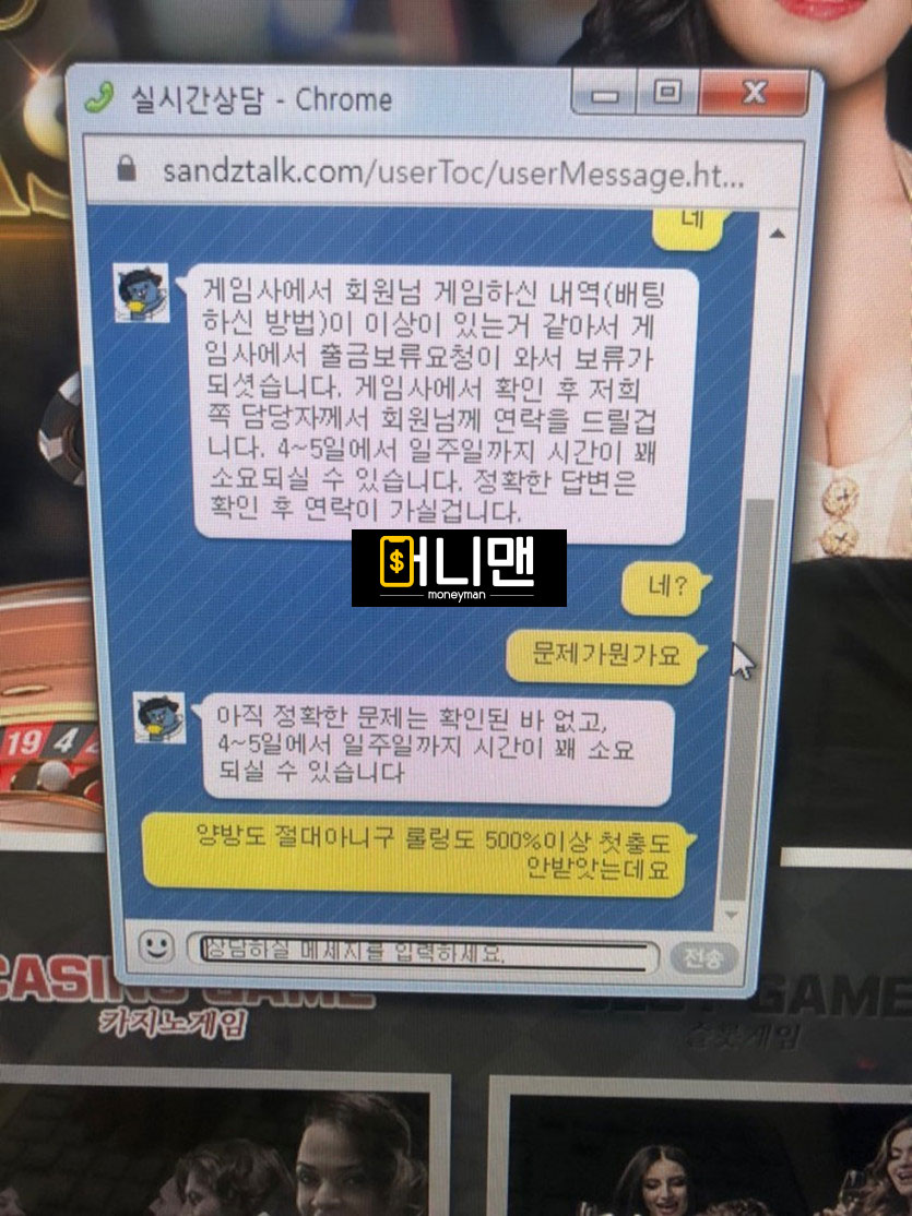 220만원 만들어서 환전신청 하니까 무슨 배팅내역에 이상한게 확인되서 7~10일 뒤에 연락준다며