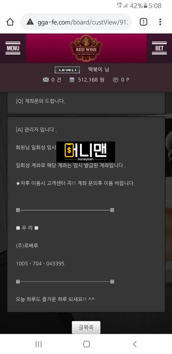레드와인 먹튀피해자 제보 내용