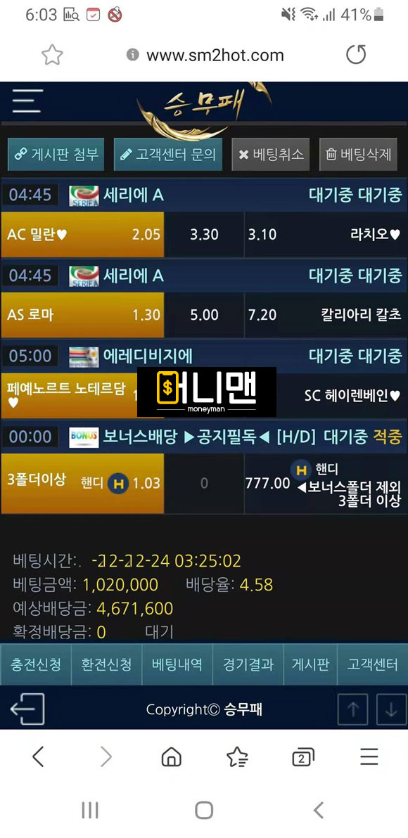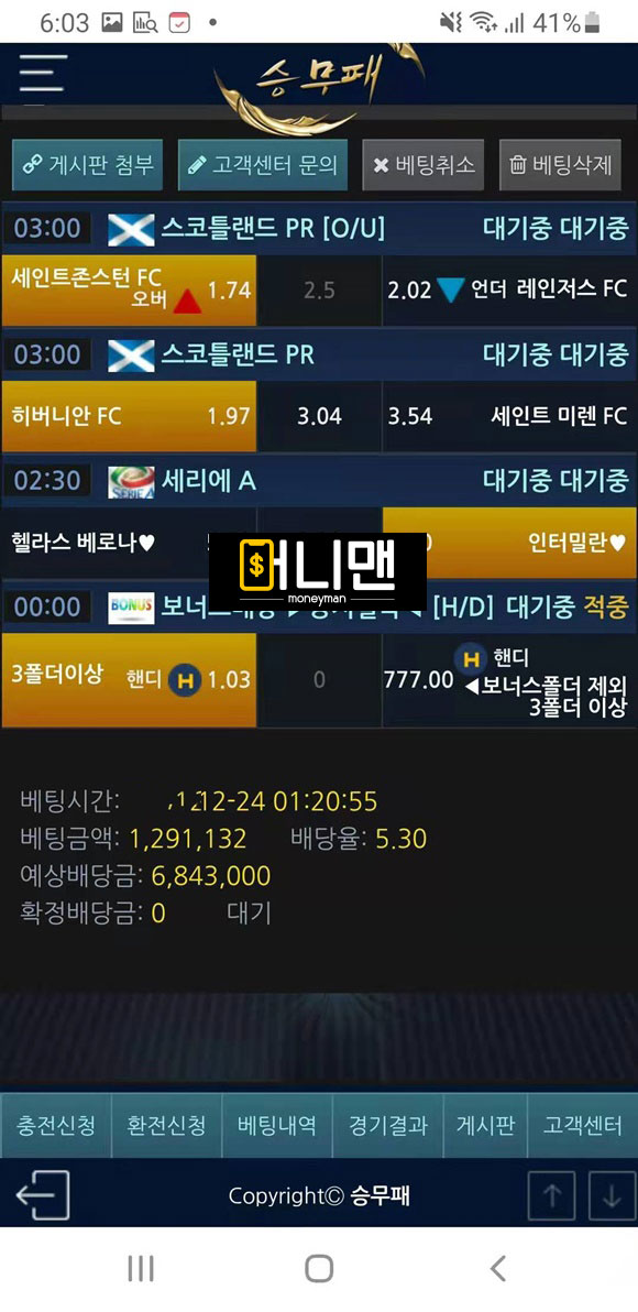 스포츠 배팅해서 당첨되가지고 미니게임 5만원 10만원씩 걸다가 짤짤이 까지 당첨되서