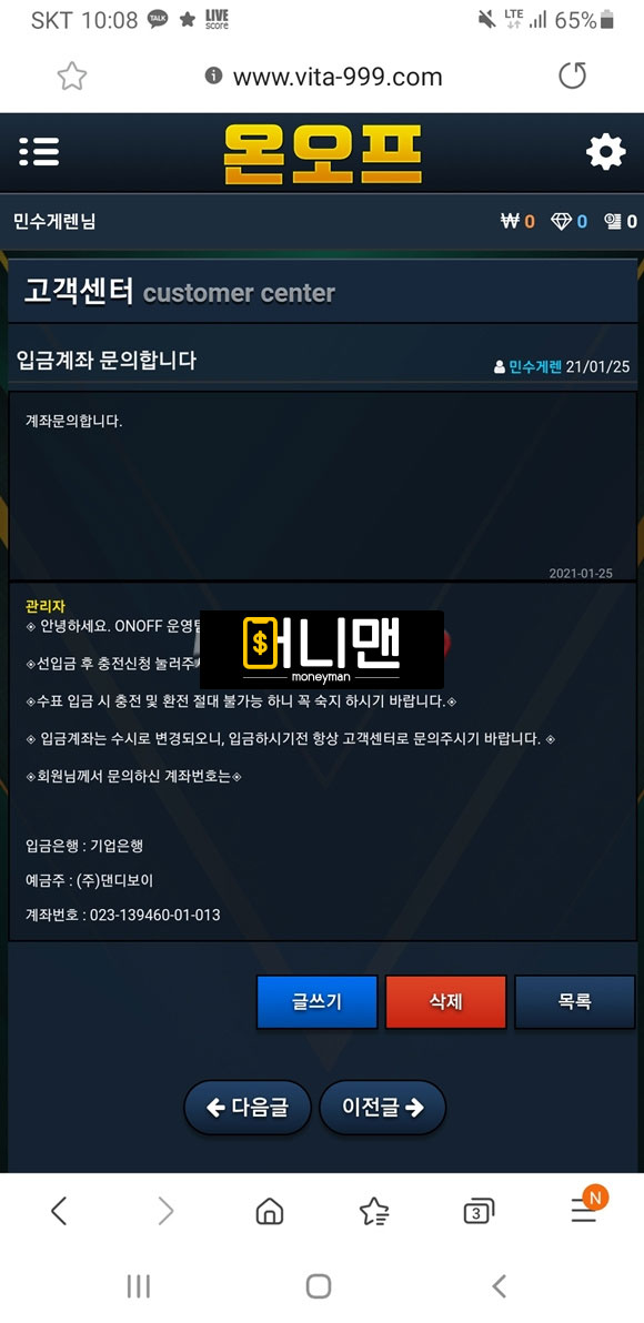 온오프 먹튀피해자 제보 내용