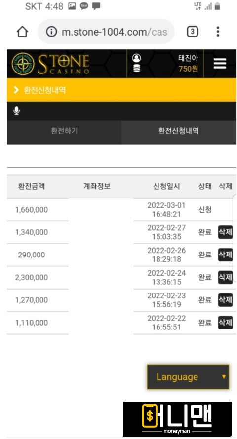 바카라 배팅을 조금 했었는데 소액은 환전이 잘나오는 편이길래 이번에도 환전이 무난하게 나오겠지? 했는데 아니나 다를까 당첨금 전액 먹튀를 하네요. 스톤이란 업체이구요 그냥 원금만 띡 입금하고 당첨금은 전액 몰수하고 끝났습니다. 사이트 고객센터도 없어서 제가 문의할 곳도 하나도 없고 정말 미칠 것 같네요.. 만약에 스톤 이용하시는 분 있으면 저 처럼 괜히 따면 원금만 주고 먹튀하니까 다른 검증된 업체에서 안전하게 배팅하세요 괜히 피해봅니다.