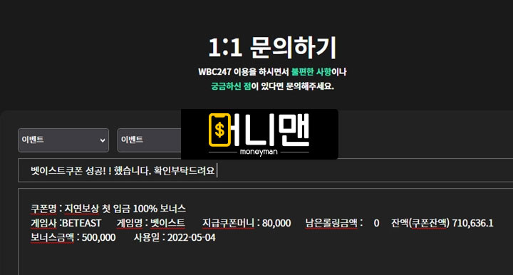 805WBC247 먹튀 이벤트 쿠폰을 통해 지급 받았던 금액을 환전거부! 먹튀사이트 확정
