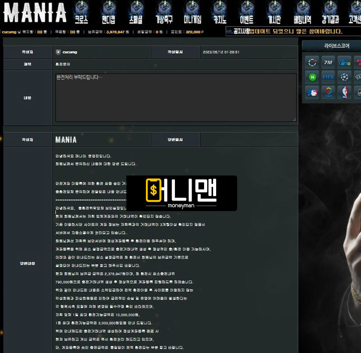 마니아(Mania) 먹튀피해자 제보 내용