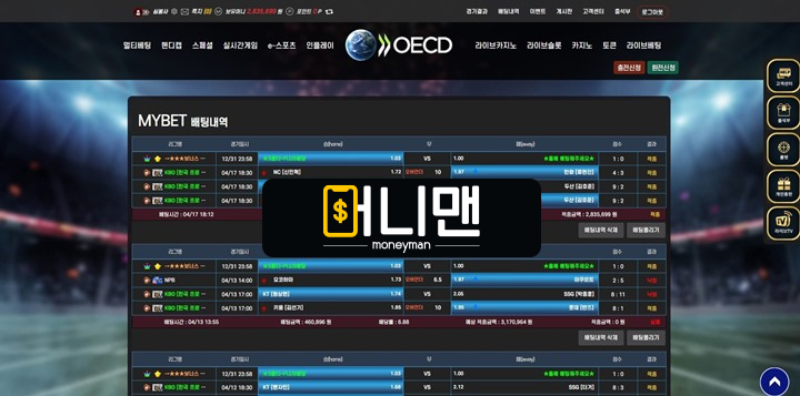 안녕하세요. 오이씨디 283만원 먹튀 발생했습니다. 배팅 내역 보시면 아시겠지만, 국내 야구 3폴 배팅했는데 이걸 먹튀 하네요. 매번 낙첨되다가 이번에 한번 당첨되어서 환전 신청하니까 양방 드립 시전하더니 당첨금의 100퍼센트 롤링 치라고 해서 배팅하고 당첨되어서 다시 환전 신청하니까 롤링 100퍼센트 추가로 더 치라고 하네요. 이때부터 느낀 게 당첨되면 돈 안 주고 낙첨되면 보유금 녹여서 자기들 먹튀 아닌 거로 명분 챙기려고 하는 거 같은 느낌이 왔는데 마지막으로 속는 셈 치고 한 번 더 배팅했습니다. 그리고 이번에도 운 좋게 당첨되니까 역시나 먹튀사이트 처럼 아무 말 없이 바로 아이디 잘라버리네요. 딱 봐도 첫 홈런 선수 안타 이런 거 배팅 하는데 양방 드립 치는 거 보면 딱 답 나오네요. 처음부터 줄 생각이 없었던 겁니다. 오이씨디 이용하시는 분 있으면 바로 중지하시고 다른 곳 이용하세요. 그리고 실배터분 조심하세요. 이제 돈 다 떨어진 구멍가게입니다. 소액이면 괜찮겠다는 생각이 특히 더 위험합니다. 제발 머니맨 같은 대형 커뮤니티에서 추천하는 안전한 곳 이용하세요. 먹튀도 어느 정도 선은 지키고 해야지 이렇게까지 했는데 돈 안 줄 거면 장사 왜 하는지 모르겠습니다.