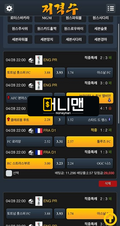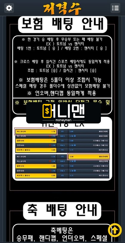 저격수라는 사이트에서 300만원 먹튀 당해서 글 작성합니다. 사이트 문자 홍보 보고 가입했습니다. 30만원 충전했더니 4만5천원이 더 들어오길래 포인트 규정 문의까지 하고 게시판에 규정도 쭉 한번 읽어 봤습니다. 그리고 미리 축구 경기 분석해 놓은 대로 3폴더 배팅하려고 했더니 4폴더 이상 배팅이 가능하다는 알람이 떠서 4폴더 배팅했습니다. 맥스 버튼 눌러보니 33만원 배팅이 되어서 걸고 남은 잔돈 만원은 로또 폴 만들어 보려고 110배 배팅을 해놨고요. 그렇게 경기 보는 데 운 좋게 분석한 대로 3경기 적중이 되었고 막 폴만 맞으면 당첨인 상황인데 사이트에서 쪽지가 왔습니다. 갑자기 적특 처리한다고 하더군요. 무슨 소리인가 해서 고객센터에 문의했더니 바로 전화가 와서 통화를 했는데 아저씨 한 분이 목소리 깔면서 제가 타 업체 블랙이고 보험 배팅이라면서 이상한 핑계를 대면서 적특 처리한다네요. 보험 배팅이 이유라고 했는데 저는 분명 만원으로 로또 폴 배팅할 때 토트넘 승을 건 적이 없습니다. 그런데 조작을 한 건지 로또 폴 배당이 130배로 올라가 있고 토트넘 승이 들어가 있었습니다. 그 뒤로는 뻔한 내용입니다. 핑계로 트집 잡고 결국 적특 처리했습니다. 돈이 없는 건지 별짓을 다 하네요.