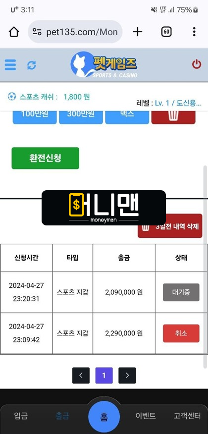 펫게임즈 이용했다가 먹튀 피해를 당한 장본인입니다. 제가 피해당한 금액은 총 209만원입니다. 모 커뮤니티에서 홍보하는 글 보고 가입했었던 사이트입니다. 롤링이 100%에 배팅 제재도 없다고 홍보하길래 마음에 들어서 가입했죠. 괜찮은 곳인 거 같아서 아는 동생에게도 추천해 줘서 둘이 같은 날 가입했습니다. 60만원 입금해서 바카라도 하고 스포츠배팅도 했습니다. 하루 반나절 놀고 나니까 60만원으로 209만원까지 만들었더라고요. 바카라를 좀 더 할지 생각하다가 그냥 오늘은 그만하는 게 좋을 것 같아서 중지하고 환전 눌렀습니다. 하지만 환전 누르고 1시간이 지나도 처리를 안 해주길래 바로 고객센터에 문의했습니다. 문의해 놓고 핸드폰 만지다가 잠이 들었는데요. 아침에 입금이 안 들어왔길래 사이트 들어가 보려고 하니까 아이디 잘려있어서 로그인을 못 하고 있습니다. 제가 잘못한 행동이 없는데 무지성 먹튀를 당한 것 같습니다. 같이 가입한 동생은 아직 환전 신청을 안 해서 피해를 본 내용은 없지만 저는 확실한 피해가 맞습니다. 일단 동생에게도 추가 입금은 하지 말고 남아있는 보유금 환전 눌러보라고 말은 해놨는데요. 동생도 똑같이 아이디 잘리면 추가 내용 다시 제보하겠습니다.