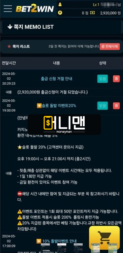 벳2윈(Bet 2win) 먹튀피해자 제보 내용