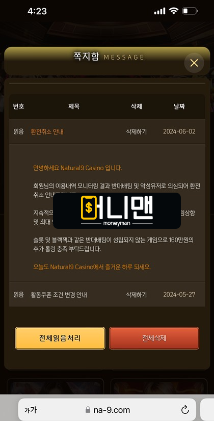 내추럴9카지노(Natural9 Casino) 먹튀피해자 제보 내용