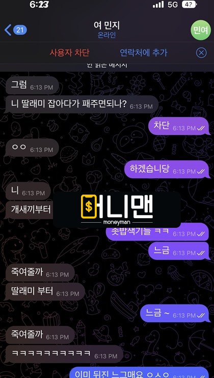 퓨리 먹튀 나왔습니다. 극악무도한 녀석들인데요. 제 돈 먹튀 하는 것으로는 만족을 못 하고 제 가족을 찾아내겠다고 협박까지 받아서 무섭습니다. 제 신상이 팔린 것 같아요. 제가 딸이 있다는 사실까지 알면서 계속 협박합니다. 바카라로 200만원 만들어서 환전 신청했는데 롤링을 돌리라고 하는데 저는 이미 사이트에서 말한 롤링은 다 채운 상황입니다. 규정 롤링보다 훨씬 더 채우고 환전 신청했는데 계속 꼬투리 잡네요. 계속 말이 안 통하길래 제가 직접 계산해서 퓨리 운영자에게 보내줬습니다. 타이 부분은 롤링 포함 아니라고 하길래 타이 빼도 롤링 맞다고 말해줘도 무조건 자기네 말이 맞다고 억지 부립니다. 이 부분으로 계속 실랑이 벌이다가 다른 아이디로 채팅이 와서 보니까 제 딸 이야기를 꺼내면서 제 계좌로 핑 돈까지 보내네요. 이러다 제가 잡혀가게 생겼습니다. 힘없는 회원에게 갑질하는 악질 사이트입니다. 제가 큰돈을 딴 것도 아닌데 진짜 너무합니다. 사이트 이용하면서 총 400만원 잃었습니다. 200만원 받아도 손해인데 대체 뭐가 문제인지 모르겠습니다. 입금은 잘 받아먹더니 정작 출금 신청하니까 매섭게 말하면서 협박하는 먹튀사이트 퓨리 이용하시면 큰일 나니까 조심하십쇼.