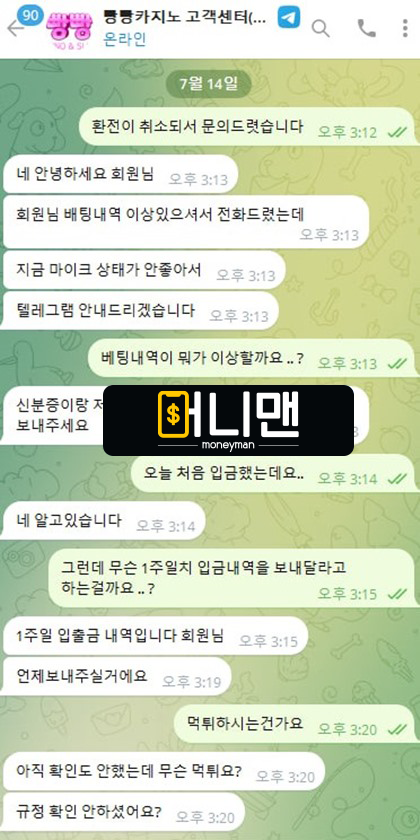 20만원 충전해서 80만원 만들고 환전 신청했더니 바로 연락이 와서 제 배팅 내역이 의심된다고 뻔한 소리합니다.