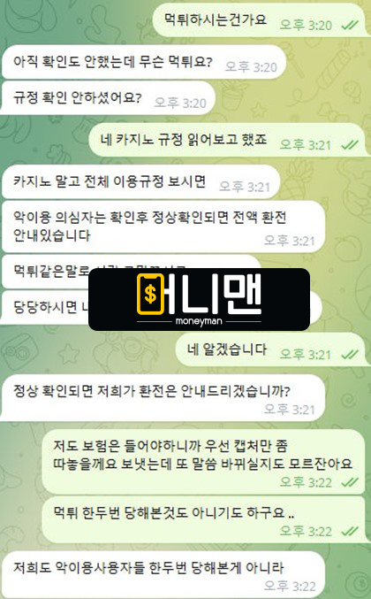 이런 개념 없는 먹튀사이트 이용할 바에는 다시는 토토 안 하는 게 현명한 선택이라고 봅니다.