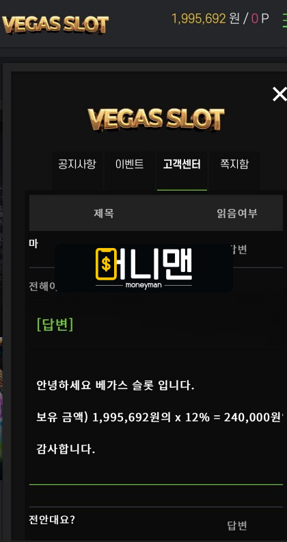 베가스슬롯(Vegas Slot) 먹튀피해자 제보 내용
