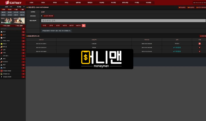 안녕하세요 캣뱃이라는 업체에서 먹튀 당해서 제보 드리게 되었습니다. 지난 2월 3일에 42만원을 충전하고 스포츠 핸디캡 축구랑 농구 두개 묶고 잤습니다. 그리고 일어나서 경기 적중된 거 확인하고 사이트에 들어가서 확인 해보니 아직 경기 결과 처리가 안 됐더라구요? 그래서 고객센터에 문의 넣어서 포인트 들어오는거 확인하고 환전 신청 넣었습니다. 근데 30분이 넘도록 처리가 되지 않아서 고센에 다시 물어보니 제가 배당 하락 경기를 배팅 했다면서 원금 처리밖에 못해준다고 하네요. 결국에는 배팅했던 원금 42만원만 출금 받았고 나머지 적중금 104만원은 그냥 사이트 멋대로 먹튀 해갔습니다ㅠㅠ