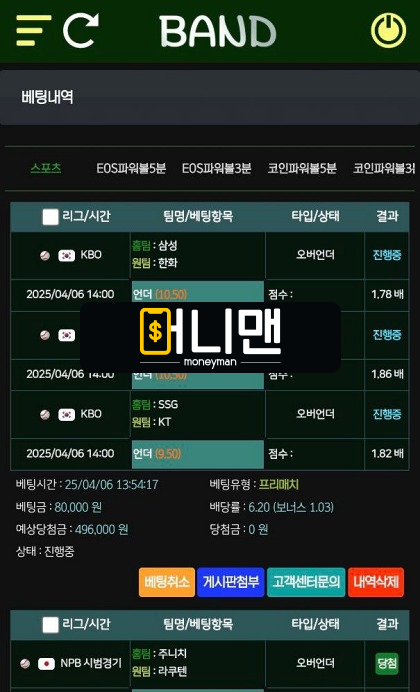 밴드 걸뱅이 먹튀사이트 49만원도 없어서 환전 안 나오는데 사이트는 어떻게 유지하고 있는 건지 신기하네요. 텔레그램에서 이벤트 홍보 하길래 그냥 별생각 없이 들어가서 가입했습니다. 가입하고 사이트 둘러봤는데 이벤트도 꽤 괜찮은 거 같고 깔끔해서 소액으로 몇 번씩 입금하면서 스포츠배팅했는데요. 그러다가 이번에 KBO 경기 3폴더를 전부 언더로 예상해서 8만원 걸었습니다. 그런데 웬일로 이게 전부 적중했더라고요. 그래서 여기서 처음으로 환전 버튼 눌러봤습니다. 그렇게 환전 나오길 기다리고 있었는데 30분이 지나도록 돈도 안 들어오고 아무런 연락도 없길래 사이트 다시 로그인해 봤는데요. 아이디와 비밀번호를 변경해 뒀는지 로그인이 안 되더라고요. 기가 차서 바로 텔레그램 고객센터에 연락을 보냈더니 3초 만에 대화방 밀어 버리고 차단했습니다. 그런데 또 텔레그램 홍보 방 같은 곳에서 찾아보면 얼굴에 철판을 깔았는지 아직도 홍보 열심히 하고 있더라고요. 이런 거 보면 처음부터 당첨금 줄 생각 없이 일단 이벤트로 꾀어서 가입시키고 먹튀 하려는 속셈이었던 거 같습니다. 그러니까 혹시라도 주변 지인 중에서 밴드 이용하려는 분이 있다면 이 글 공유해 주세요. 여기는 그냥 먹이가 올 때까지 기다리는 개미지옥입니다.