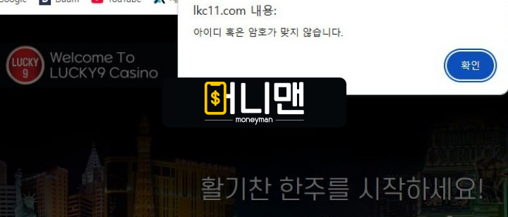 럭키9카지노에서 사이트 이름처럼 행운이 왔지만, 먹튀 당하면서 아무런 소용이 없어졌네요. 친한 친구 후배 소개로 가입해서 배팅하고 있었습니다. 25만원 걸어서 잃으면 50만원으로 배팅하는 마틴 배팅으로 했더니 제재하더라고요. 그리고 규정이라면서 50만원으로 먹었으면 다음 판은 최소 먹은 금액에 30퍼센트 이상 배팅해야 한다고 했습니다. 아무리 생각해도 이건 제재가 너무 심한 거 같아서 적당히 먹고 사이트 옮기려고 했는데요. 제가 사이트 옮기려고 해서 그런지 갑자기 카드가 잘 맞아떨어졌습니다. 그렇게 게임을 한창 하고 있었고 어느새 700만원 정도를 만들었더니 게임이 갑자기 멈춰서 렉인 줄 알고 새로고침 버튼을 눌렀는데요. 사이트가 튕기더니 다시 접속하려고 해도 접속이 안 됐습니다. 아무런 안내도 없었는데 사이트가 튕긴 거라서 문제가 생긴 줄 알고 문의를 보냈는데요. 아무리 기다려도 답변도 안 해주길래 답답한 마음에 여기 소개해 준 친구 후배에게 연락했더니 자기도 지금 차단된 거 같다고 합니다. 제재가 심해도 불만을 표출하지 않고 시키는 대로 배팅했는데 잠수 먹튀 하는 걸 보니 더 이상 말할 필요가 없는 먹튀사이트 같네요. 이 글을 보시고도 사용할 생각이라면 말리지는 않겠습니다. 그냥 여러분이 알아서 판단하세요.