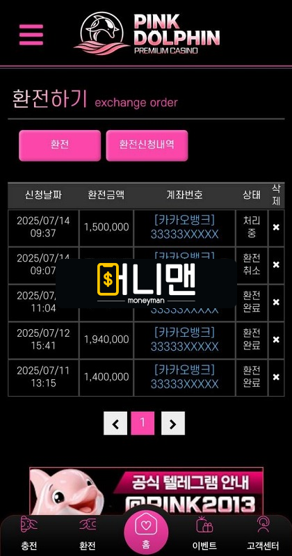 핑크돌핀(Pink Dolphin) 먹튀피해자 제보 내용