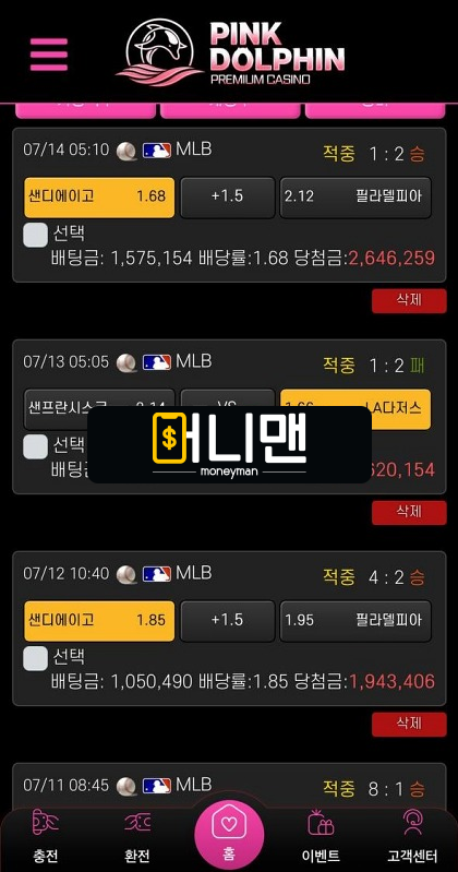 메이저급 자본이 있다던 핑크돌핀 연속으로 당첨되니까 돈 떨어졌는지 264만원 먹튀 하네요. 처음에 문자로 홍보하면서 정상적인 배팅을 하면 억대도 환전 내준다고 하길래 마음에 들어서 가입하게 되었습니다. 가입 후 MLB 단폴더로 계속 배팅했는데요. 초반에 사이트에서 했던 말이 신경 쓰여서 배팅 내역을 검토받았습니다. 솔직히 검토받을 필요가 없는데, 혹시나 하는 마음에 받았던 건데요. 이렇게 매번 배팅할 때마다 계속 받았고 항상 정상 배팅이라는 답변을 받았습니다. 그런데 오늘 또 당첨되어서 환전 신청을 했더니 환전 취소를 때리고 전화로 양방 인정 안 하면 원금까지 몰수한다고 하네요. 이렇게 일방적으로 양방이라고 하면 제가 이때까지 검수받았을 때 정상 배팅이라고 했던 건 뭐가 되는 겁니까? 심지어 어제도 문의하니까 귀찮았는지 전화로 정상 배팅이니까 지금처럼만 계속 사용하면 된다고 했습니다. 그런데 제가 이렇게 4번 연속으로 당첨되니까 수억대 자본력이 있다던 사이트가 시재가 다 떨어졌는지 양방이라고 트집을 잡네요. 벌써 수억대 자본을 다 쓴 건지 아니면 처음부터 돈이 없는 핫바리 사이트였는지는 모르겠지만 돈 없는 건 확실한 거 같습니다. 그리고 제가 먹튀 글 올린다니까 급하게 정상적인 배팅이라고 말했던 대화 내용을 전부 삭제하던데 하는 짓이 참 동네 양아치 수준이네요. 아무리 양아치여도 제발 줄 건 주면서 장사를 합시다.