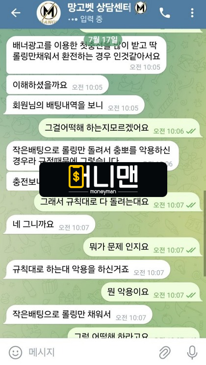 805망고벳 mangobet.net 먹튀사이트 규정은 지켰지만 소액으로 했다며 61만원 먹튀!