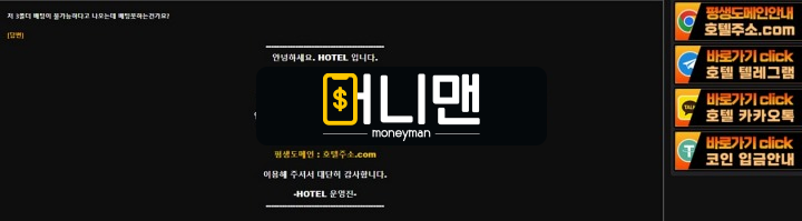 기존에 있는 곳보다 더 챙겨준다던 호텔카지노 알고 보니 먹튀사이트 였습니다. 처음에는 잠깐 이용해 볼 생각이었지만 계속 잃다 보니 백만원 이상 잃고 있어서 멘징 하려고 계속 입금했는데요. 그러다 겨우 한 번 적중해서 이때까지 잃은 돈 보다 많은 394만원이 생겼습니다. 그런데 막상 당첨되고 보니 유선 전화가 와서 있는 보유 머니로 4폴더 배팅하라는 개소리를 하네요. 아니면 환전을 내줄 수 없다고 해서 싸워 봤지만, 같은 말만 앵무새처럼 반복하고 제가 물어본 건 대답도 안 합니다. 대화도 안 통하고 일방적으로 요구만 하고 끊어 버리길래 전화 왔던 번호로 다시 전화를 걸었더니 총관리자라는 사람이 전화를 받더라고요. 그런데 이놈도 심각합니다. 가오란 가오는 전부 잡더니 자기들이 시키는 대로 하라네요. 솔직히 394만원도 못 주는 사이트가 4폴더 맞으면 금액이 더 커질 건데 주겠습니까? 그래서 제 생각을 그대로 말했더니 그건 맞을 확률이 낮다면서 맞으면 준다고 하네요. 토토커뮤니티에 올라오는 신고 글을 많이 봤지만 이런 소리를 하는 토토사이트는 여기밖에 없을 겁니다. 그러니까 여기에서 티엠으로 홍보 전화 오면 무조건 거르세요. 그리고 자기들이 무슨 프로그램이 있다는데 그거 돌리면 양방 치는 사람들 기록이 다 나온다고 합니다. 그런데 그게 그냥 개소리인 이유가 400만원도 없는 놈들이 무슨 돈이 있어서 프로그램을 쓰겠습니까? 여러분은 이런 일이 안 일어나도록 제 글 보시고 호텔카지노는 피해서 이용하세요.