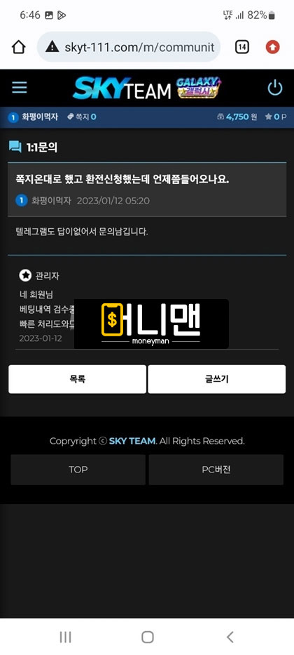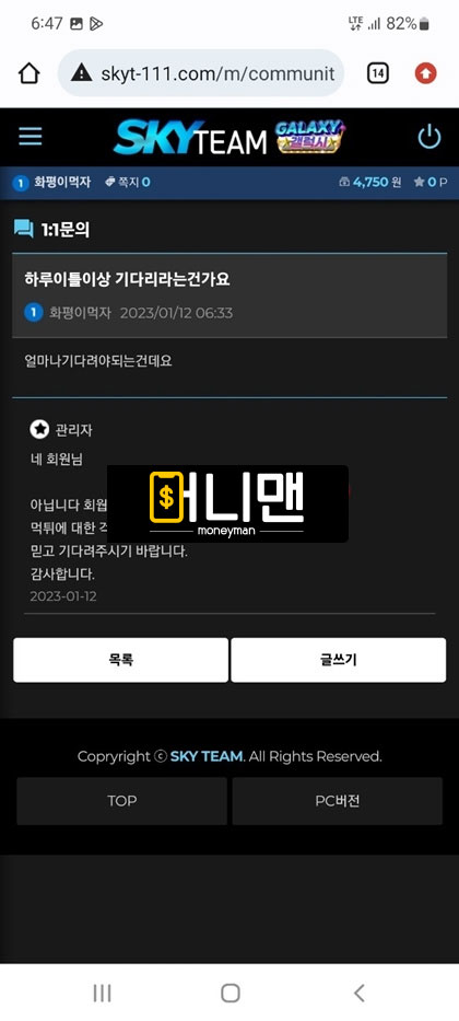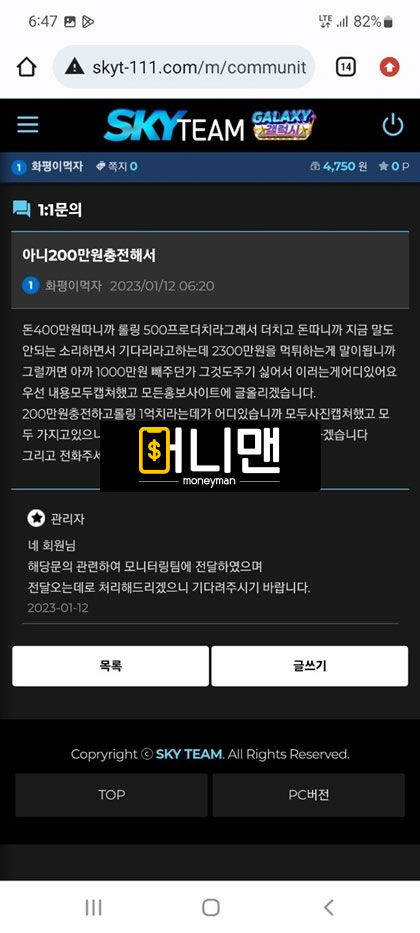 스카이팀(Sky Team) 먹튀피해자 제보 내용