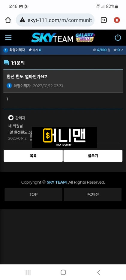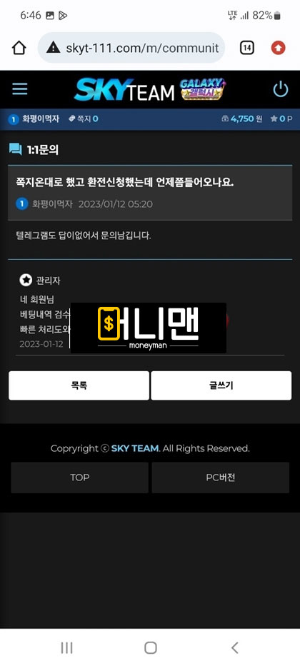 스카이팀(Sky Team) 먹튀피해자 제보 내용